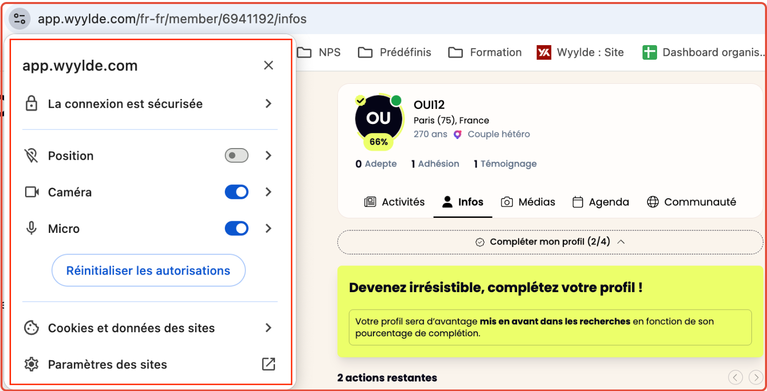 La connexion à wyylde.com utilise une version de protocole https et une suite de chiffrement sécurisé. La navigation sécurisée est bien activée sur votre navigateur si l'URL de wyylde.com est précédée d'un petit cadenas.