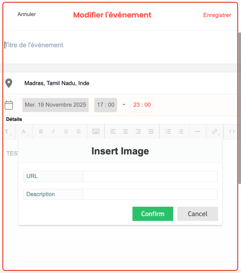 Les images sont à télécharger dans vos événements via des liens et ne peuvent pas être collées, ou télécharger en format image directement.