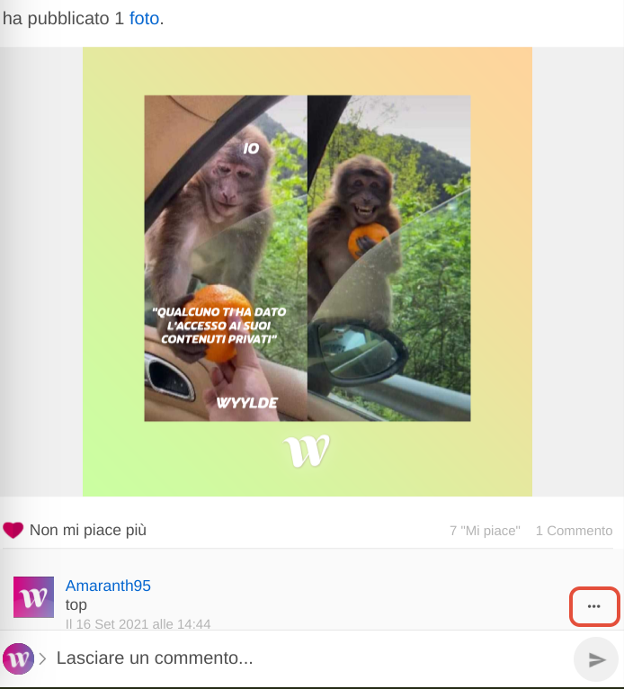 Per cancellare o modificare un commento, usa i tre piccoli punti a destra del tuo commento.